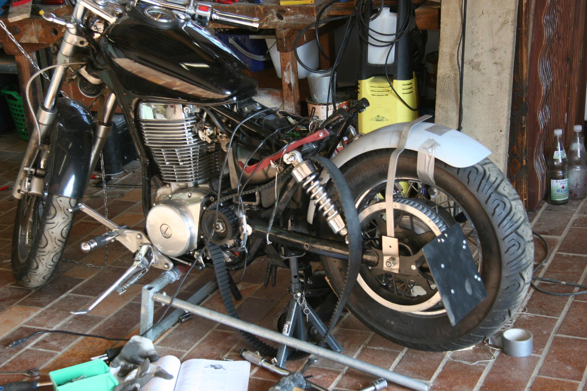 Mit dem Umbau hat es wie bei fast allen mit dem Lenker angefangen! Das Original ist wahrlich kein Eyecatcher....vieles haben wir probiert...Drag Bar, Wider Bar usw. Momentan ist ein Lucas TRW Speedfighter Lenker verbaut, mit dem man die Else gut um die Kurven bringt. Weiter ging es mit weiteren optischen Anpassung, doch auch technisch wurde einiges abgeändert. Regler und weitere elektrische Bauteile wanderten in den Werkzeugkasten, Stahlflexbremleitung war ein Muss und der oben genannte Steuerkettenspanner wurde bei gut 12000KM auf der Uhr gegen den TBKS getauscht!
